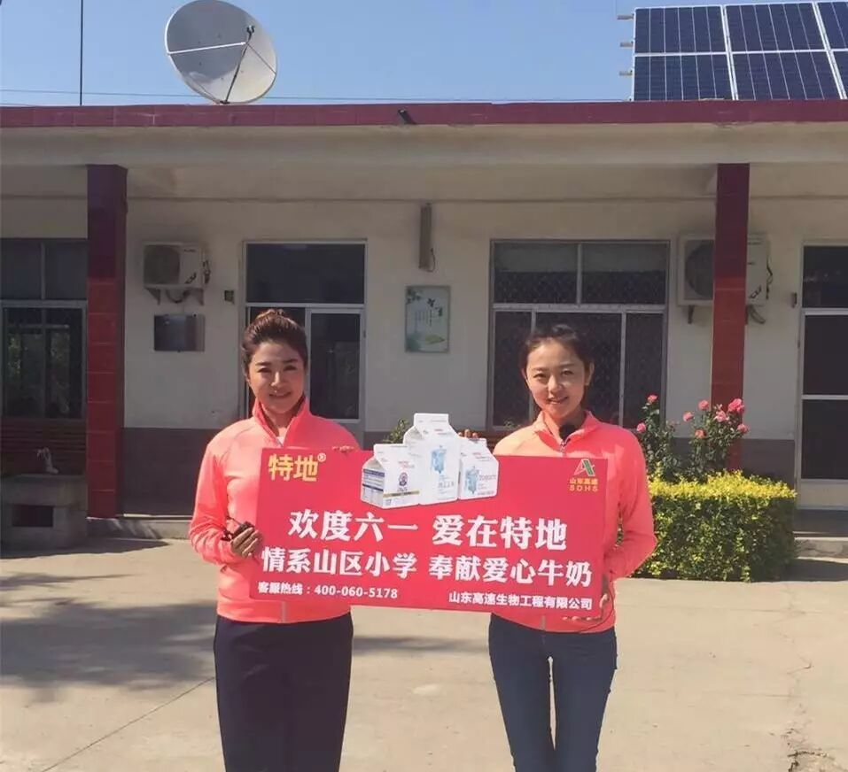 2017年5月26日,六一儿童节即将到来之际,山东高速特地携手济南电视台联袂开展爱心公益行走进山区小学献爱心活动。前往济南是长清区万德镇东房小学,为山区小学的孩子们带去了最健康,最安全的特地高端巴氏奶,与孩子们一起提前度过了一个充满爱与快乐的儿童节。